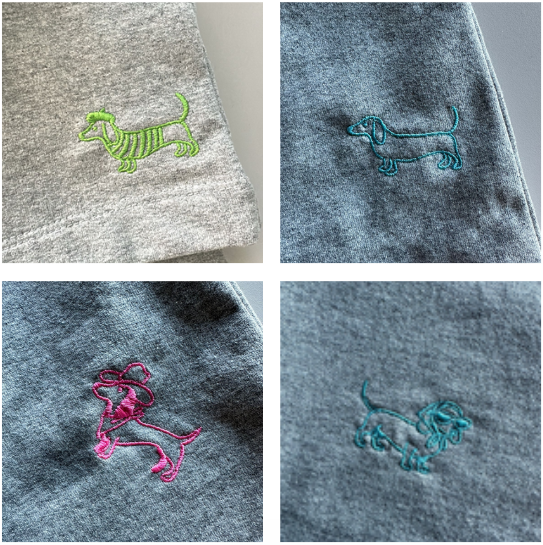Kies je borduursel uit onze vier iconische teckels: