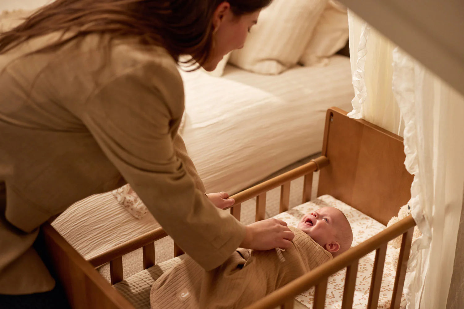 Geef je kleintje warmte en geborgenheid met deze zachte wrapper. De armpjes van je baby kunnen veilig in de wrapper worden gewikkeld, zodat ze zichzelf niet wakker maken. Dankzij de klittenbandsluiting zit hij altijd comfortabel en knus, terwijl de prachtige biscuitkleur en ajour stof de wrapper extra lief maken. Perfect voor baby's van 0-3 maanden en ideaal voor een heerlijke nachtrust.